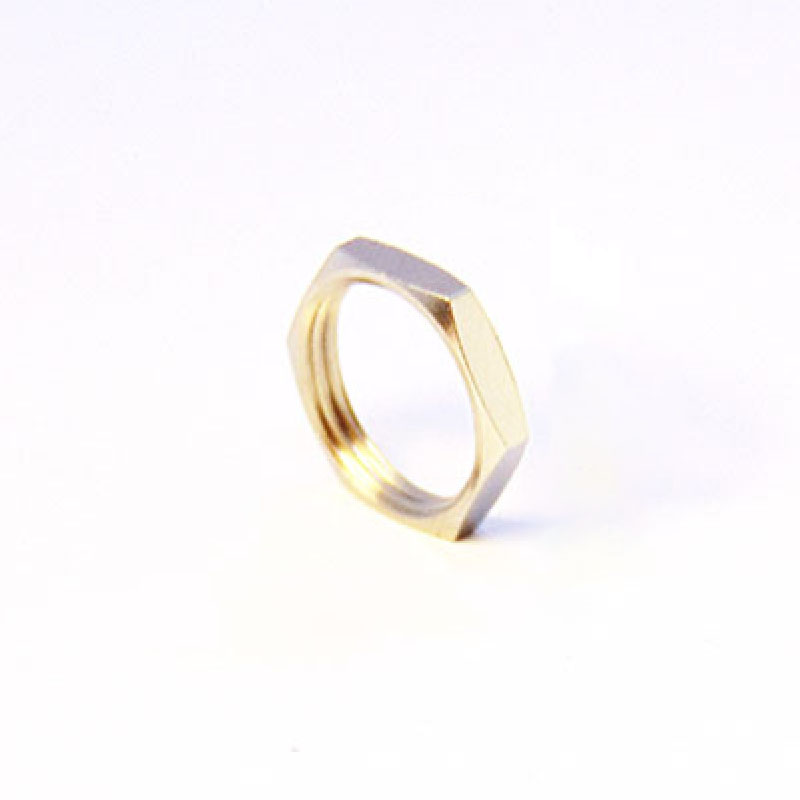 The standard hex nut is made from brass with a nickel plating. The Hex Nut has a part number 71X-0018-33.