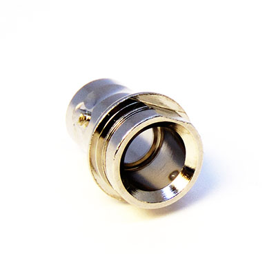 The 71X-0037-33 is a BNC outer circlip bulkhead mount connector body for use with one of the inners of the 2 part system. It is made from brass with a nickel plating. It is supplied without circlip, which can be ordered as a separate item (part number 71X-0036-33).