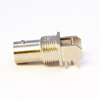 This precision 75Ω BNC Connector is a right angle mounted PCB connector with a selection of different leg lengths available. It also features Pathfinder TM light pipe technology which aids port identification. With a centre line of 4mm above the board, its low profile permits closer packing densities of daughter boards, which allows reduction in the bulk of routing and switching equipment.