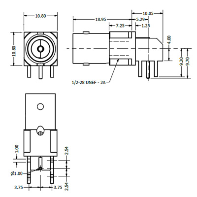 C-SX-068 – 3GHz Top Entry PCB Mounted BNC Connector (Square Based)