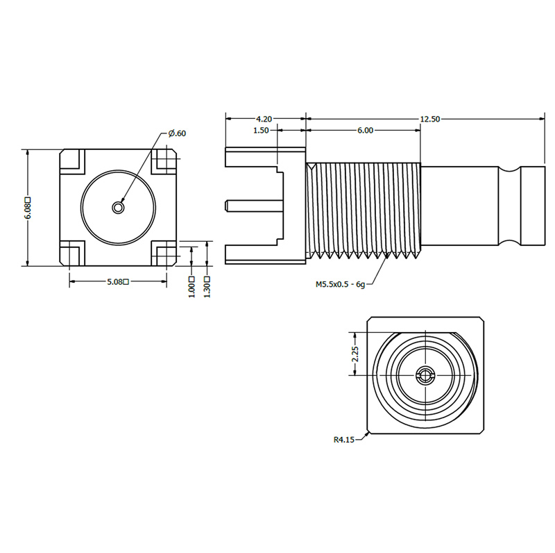 C-SX-099G – PCB Top Entry 1.0 / 2.3 Bulkhead Connector