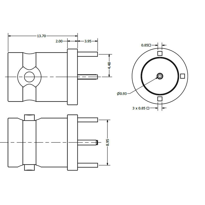 C-SX-063 – 3GHz Top Entry PCB Mounting BNC Connector