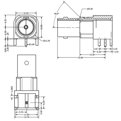 C-SX-063 – 3GHz Top Entry PCB Mounting BNC Connector