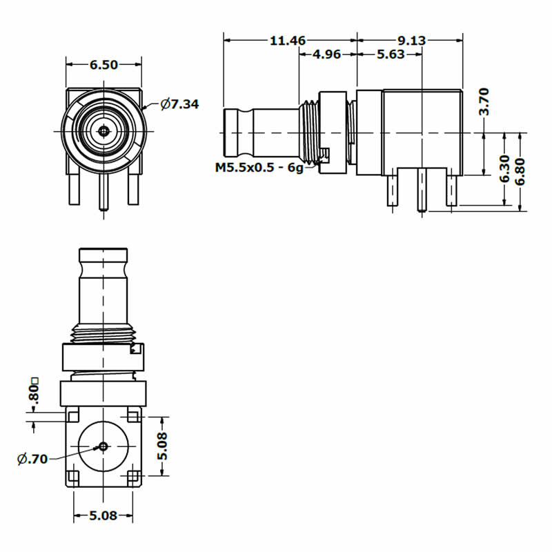C-SX-063 – 3GHz Top Entry PCB Mounting BNC Connector