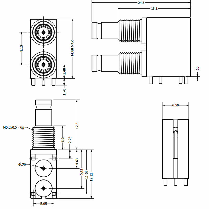 C-SX-117G – Dual Port Right Angle DIN 1.0/2.3 Connector