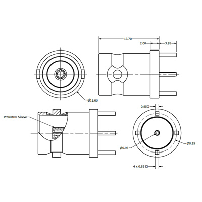 C-SX-068 – 3GHz Top Entry PCB Mounted BNC Connector (Square Based)