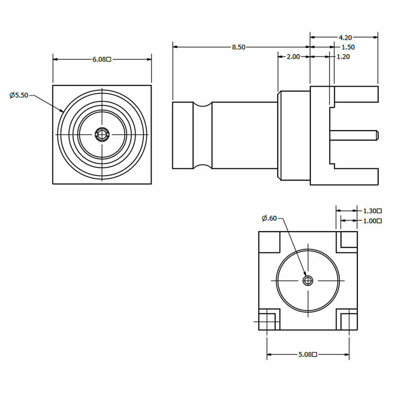 C-SX-068 – 3GHz Top Entry PCB Mounted BNC Connector (Square Based)