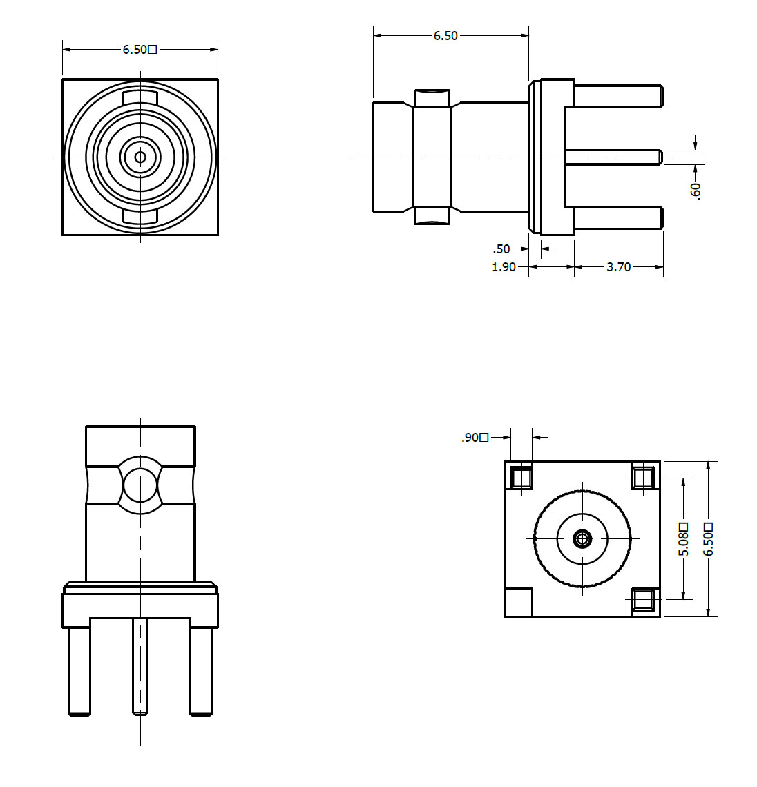 C-SX-068 – 3GHz Top Entry PCB Mounted BNC Connector (Square Based)