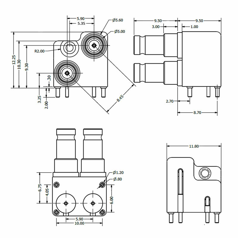 The C-SX-143 is a low profile dual port connector which allows an enhanced packing density of connections on a standard PCI Card. This is made possible by combining the small format of DIN 1.0 / 2.3 style connectors with a unique diagonal mounting style, while also offering the standard of SMPTE ST 2081-1, allowing bit-rates of 5.94Gbit/s over a single coaxial connection.