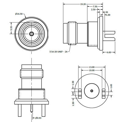 C-SX- 134N – Top Entry DIN 1.0/2.3 Connector (Short Body)