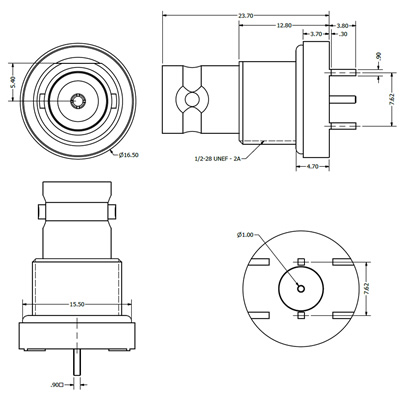 C-SX-068 – 3GHz Top Entry PCB Mounted BNC Connector (Square Based)