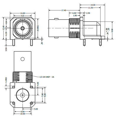 C-SX-063 – 3GHz Top Entry PCB Mounting BNC Connector