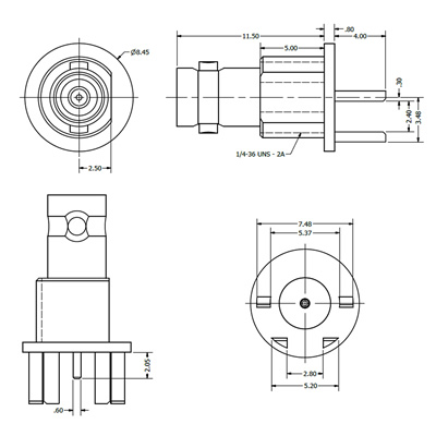 C-SX-061 – 3GHz Top Entry PCB Mounted Press Fit Hybrid BNC Connector