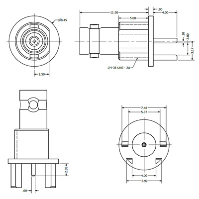 C-SX-063 – 3GHz Top Entry PCB Mounting BNC Connector