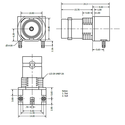 C-SX-058G – 3GHz Edge Mounting BNC Connector with Location Webs