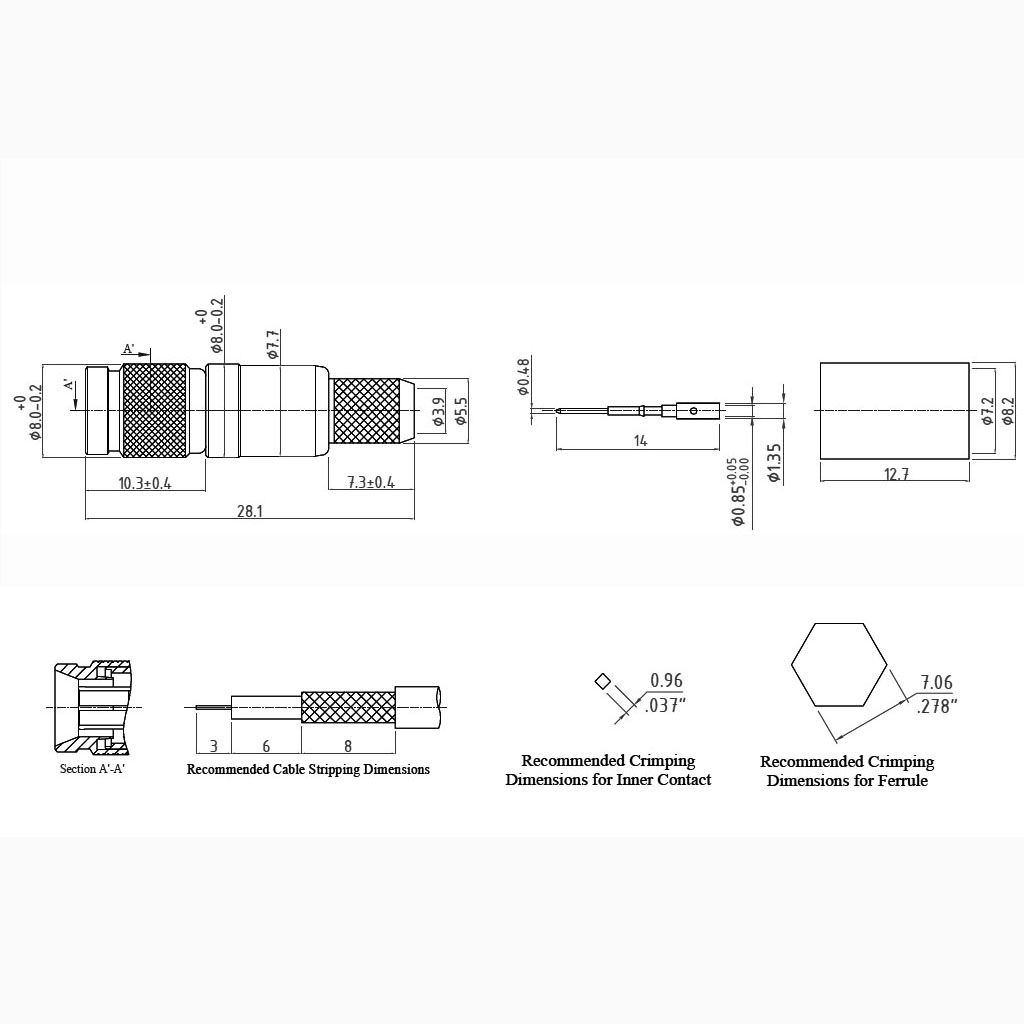 The C-SX-193 precision 75Ω DIN 1.0/2.3 Connector is a cable mounted non latching connector. The connector features the ability to uncouple with minimum force. The connector is suitable for cables in the BC group which includes Belden 1505F.
