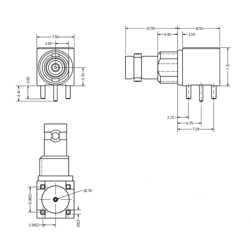 C-SX-199 – Right Angle PCB Bulkhead Micro BNC Connector
