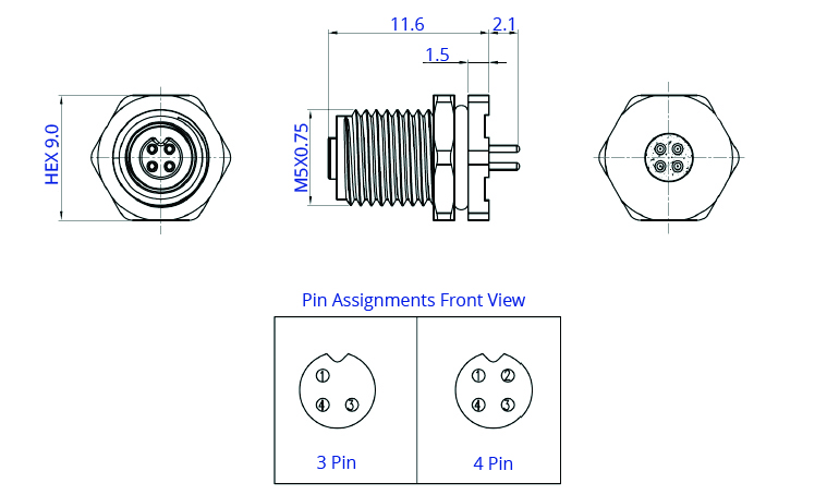 CC05-XXS-FA-PB8 – M5 Front Fastening Socket (A Code)