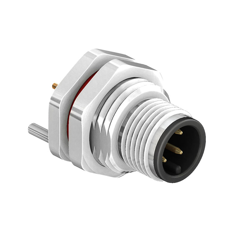 The CC12-XXP-FA07-PBSX is an M12 circular plug connector which is available with 2 to 12 pins and a shielding pin. The connector is an A coding and is supplied with either a PG9 or M16 lock thread nut. The connector features straight pins to the rear for mounting directly to a PCB. With an IP67 waterproof rating. These small circular connectors can be used for sensors and power connections as well as in PROFINET, field bus, CAN bus and DeviceNet applications.