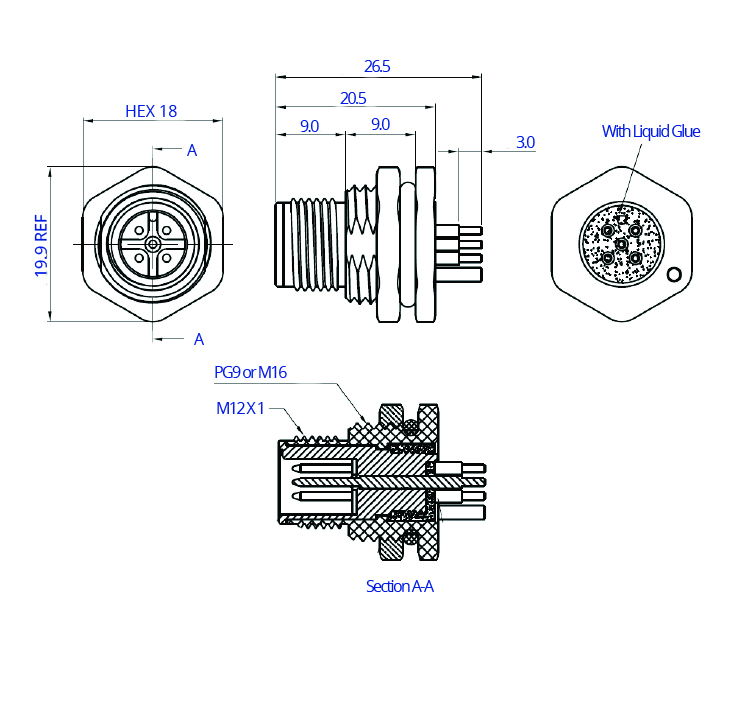 The CC12-XXP-FA07-PBSX is an M12 circular plug connector which is available with 2 to 12 pins and a shielding pin. The connector is an A coding and is supplied with either a PG9 or M16 lock thread nut. The connector features straight pins to the rear for mounting directly to a PCB. With an IP67 […]