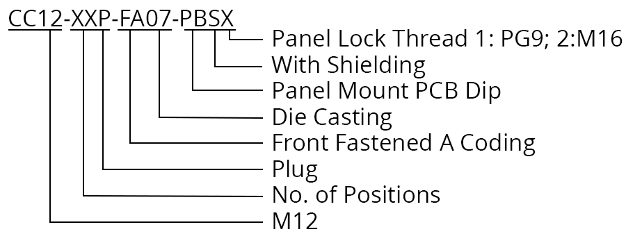 CC12-XXP-FA07-PBSX – M12 Front Fastening Shielded Die Cast Plug (A Code)