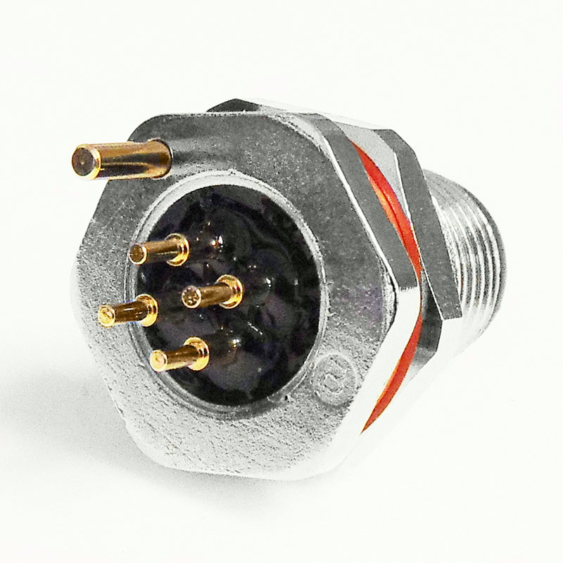 The CC12-XXP-FD07-PBSX is an M12 circular plug connector which is available with 2 to 5 pins and a shielding pin in a D coding. The connector features straight pins to the rear for mounting directly to a PCB. The M12 connectors are designed for use in industrial applications and feature a small and robust design which has a waterproof rating of IP67, which protects your equipment from entry of water or dust into your system.