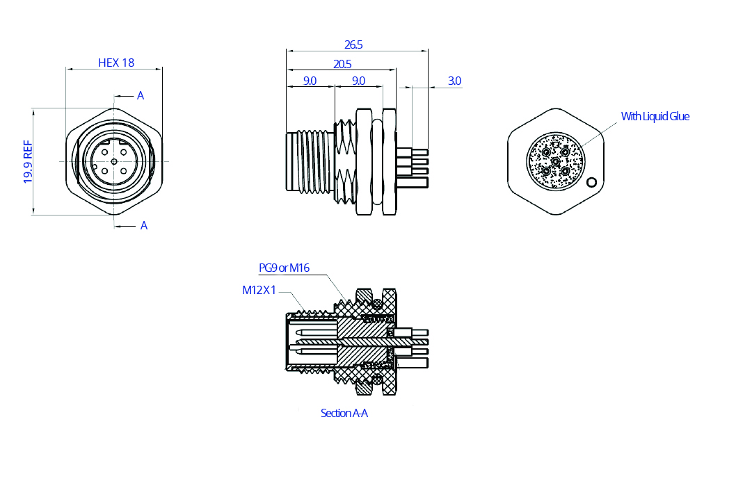 805-CC12P – M12 Plug Circular Connector Waterproof Cap