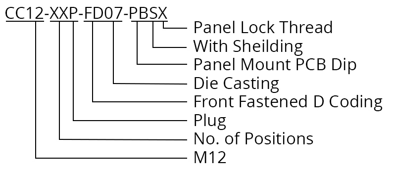 CC12-XXP-FD07-PBSX – M12 Front Fastening Shielded Die Cast Plug (D Code)