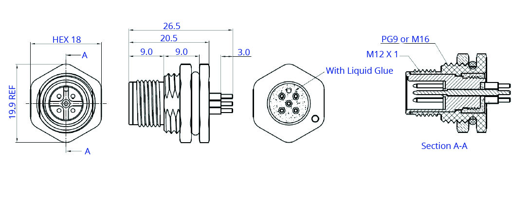CC12-XXP-FX-PBX – M12 Front Fastening Plug (A and D Code)