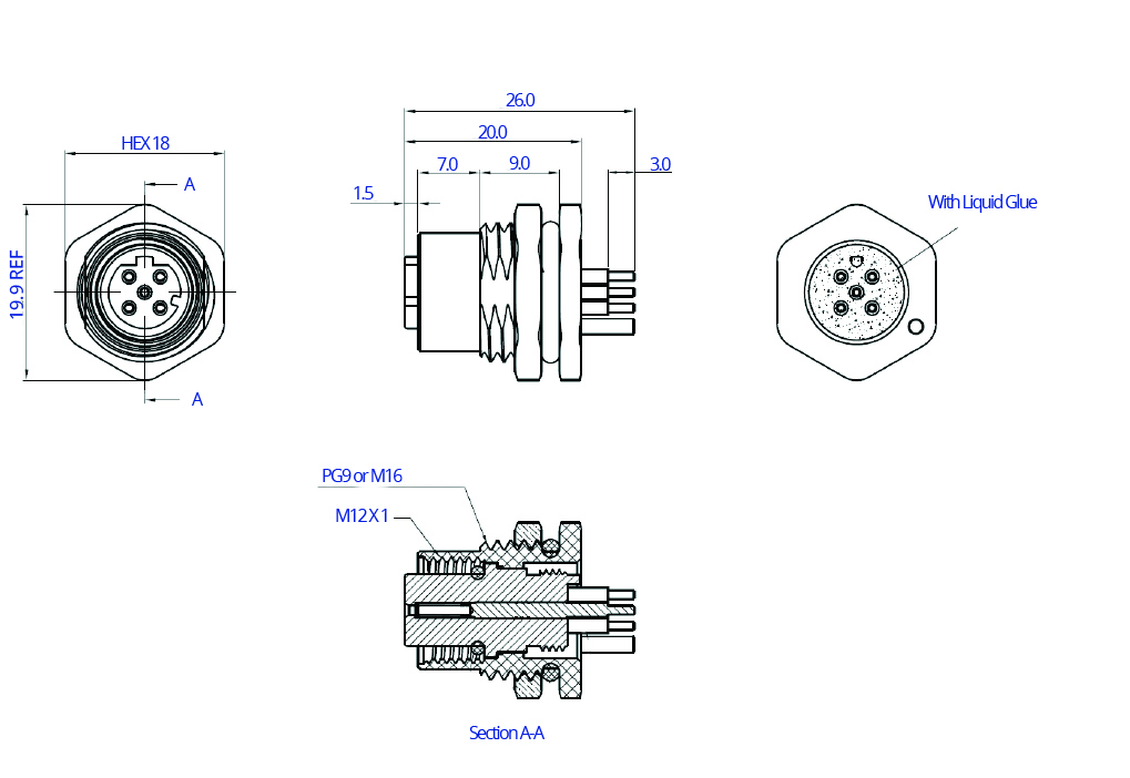 CC12-XXS-FD07-PBSX – M12 Front Fastening Shielded Die Cast Socket (D Code)