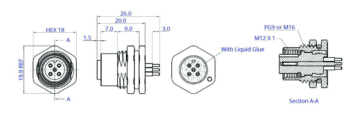 CC12-XXS-FX-PBX – M12 Front Fastening Socket (A and D Code)