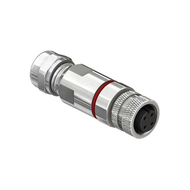 The CC12-XXS-X04-AC is a cable mounted M12 socket connector. It is available in A and D Coding and has a crimp termination style for connection onto a cable of between 4 and 6.5mm in diameter. The connector can be purchased as a loose connector or as part of a bespoke cable assembly. The connector is IP67 rated, when in locked position, so provides security against ingress of water or dust into your equipment.