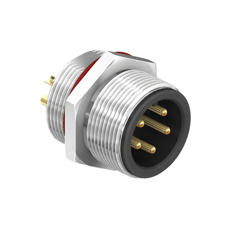 The CC20-XXP-RA-PM is a M20 circular plug connector which is available with 5 and 8 pin options in an A coding. The connector is rear fastening panel mounted and features solder buckets to the rear for mounting on cable. The M20 connectors offer high power connection options with the availability of 2.5kW per pin. The connector can be purchased as a single connector or as part of a standard cable assembly (SCA20-XXPRA-XXXX) or as part of a bespoke assembly with mixed termination options.