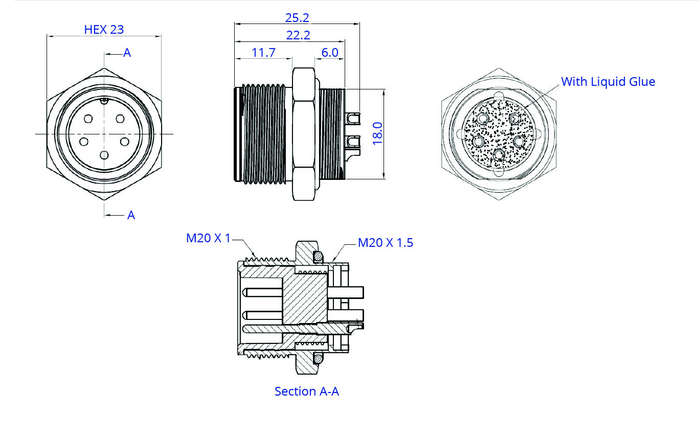 CC20-XXP-RA-PM – M20 Rear Fastening Plug (A Code)