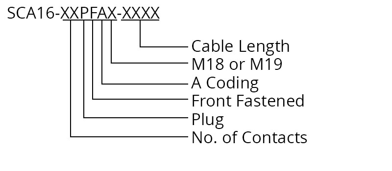 The SCA16-XXPFAX-XXXX is an M16 Plug cable assembly which comes with a stub end as standard. The front fastening connector is available in an A coding and with 2 to 14 pin options. The connector is supplied with either an M18 or M19 nut. The assembly can be supplied to your required length or can be […]