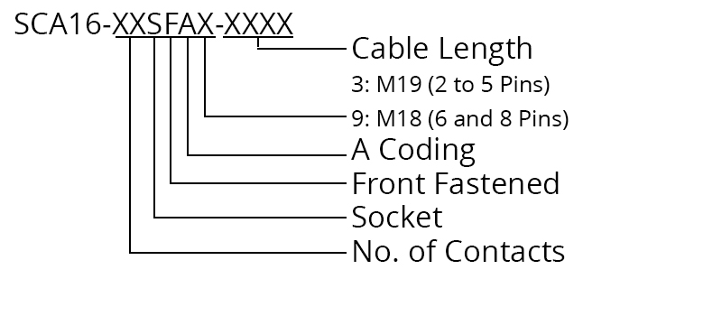 SCA16-XXSFAX-XXXX – M16 Front Fastening Socket Cable Assembly (A Code)