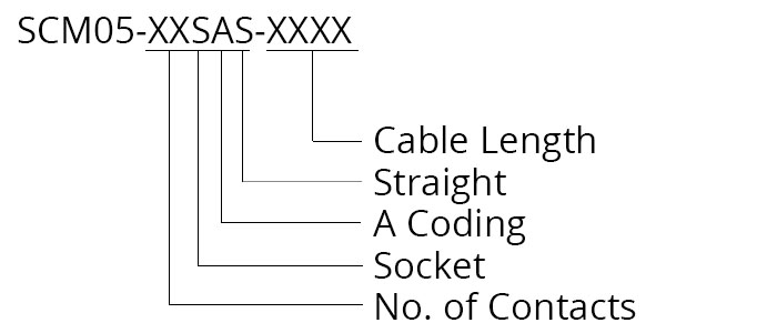 SCM05-XXSAS-XXXX – M5 Over- moulded Socket Cable Assembly (A Code)