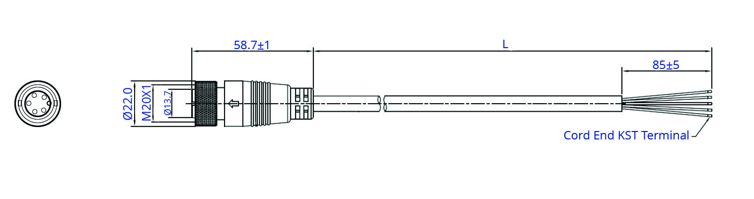 SCM20-XXSAS-XXXX – M20 Over-moulded Socket Cable Assembly (A Code)