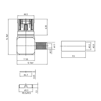XDT-6304-GGAF – Right Angle Cable Mounted SMB Plug