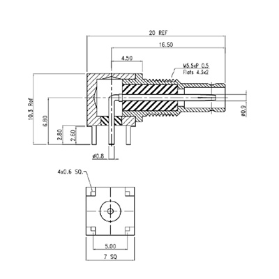 C-SX-068 – 3GHz Top Entry PCB Mounted BNC Connector (Square Based)