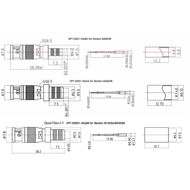 The XPT-D001-NGXX connector is a cable mounted Micro BNC plug, which can be used with Belden cables for 12G applications.
