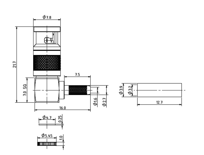 The XPT-D005-NGAF connector is a cable mounted right angle Micro BNC plug, designed for use with 12GHz cable (such as RG179 and RG187).